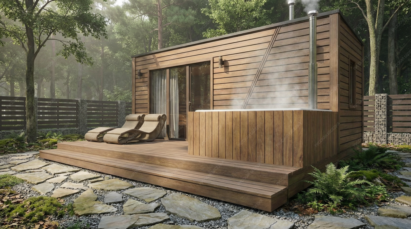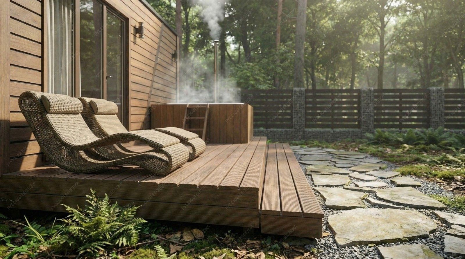 Баня «Равелла» — образец эргономичной и сбалансированной планировки, где даже на ограниченной площади достигнута полная функциональность. Её отличительная черта — симметричная компоновка: площадь открытой террасы (10,76 м²) практически равна площади внутренних помещений, что создает гармоничное равновесие между закрытым пространством и отдыхом на природе.  Внутренняя организация продумана с максимальной рациональностью. Комфортная парная (4,5 м²) с традиционным окном-форточкой обеспечивает качественный легкий пар. Отдельный душевой отсек повышает уровень гигиены и удобства, а уютная комната отдыха (6,97 м²) предназначена для расслабления после процедур. Односкатная крыша и компактные общие габариты (2,5х5,95 м) придают строению современный, аккуратный вид, идеально подходящий для участков с ограниченным пространством.  Качественная древесина и точный конструктив гарантируют эффективное теплосбережение и долговечность. Проект «Равелла» предлагает законченное решение для ценителей классической бани, где в минимальных габаритах собрано всё необходимое для полноценного отдыха и оздоровления, делая эту модель практичным и осознанным выбором.