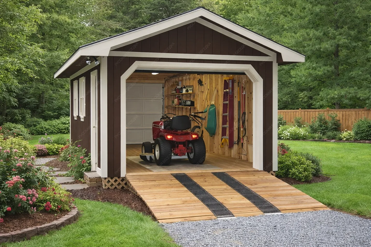 Деревянный гараж для мотоциклов и квадроциклов — это специализированное сооружение, созданное для надёжного хранения мототехники и сопутствующего оборудования. Прочная конструкция из натуральной древесины обеспечивает оптимальный микроклимат внутри: материал дышит, предотвращая скопление влаги и образование коррозии на металлических деталях, а также защищает от резких перепадов температур. Это идеальная среда для сохранения работоспособности двигателей, ходовой части и внешнего вида техники в межсезонье и во время длительного простоя. Внутреннее пространство организовано с учётом потребностей владельца: предусмотрены полки и стеллажи для размещения шлемов, защитной экипировки, инструментов, запасных частей и расходных материалов. Всё необходимое всегда под рукой, а порядок внутри гаража позволяет быстро подготовиться к выезду или провести техническое обслуживание. Продуманная система хранения исключает беспорядок и экономит время. Внешний вид строения гармонично вписывается в любой ландшафт, будь то загородный участок или территория загородного дома. Древесина придаёт естественность и экологичность, а при желании гараж может быть окрашен в любой цвет или покрыт защитными составами для увеличения срока службы. Конструкция рассчитана на высокие нагрузки, устойчива к ветру и осадкам, что гарантирует сохранность мотоциклов и квадроциклов даже в суровых погодных условиях. Инвестиция в такой гараж — это вложение в долговечность техники и собственное спокойствие.