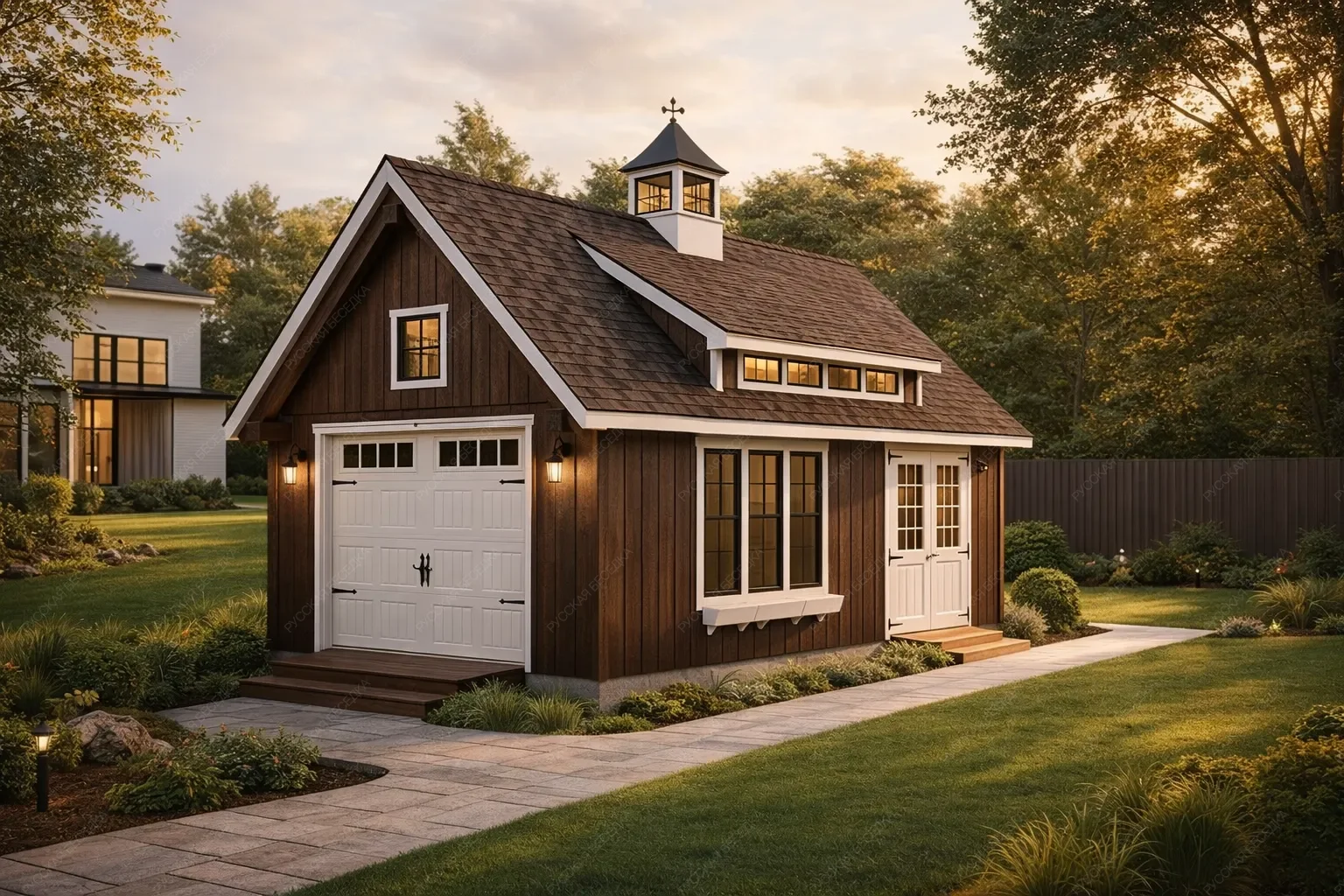 Деревянный гараж — это не только удобное и функциональное сооружение, но и отличная возможность дополнить архитектурный стиль вашего участка. Деревянные конструкции остаются вечной классикой, так как дерево — экологически чистый и натуральный материал. Одним из основных преимуществ деревянных гаражей является их доступная цена, что делает их более выгодным вариантом по сравнению с постройками из других материалов. При правильном строительстве деревянный гараж может служить десятилетиями, сохраняя все свои свойства и привлекательный внешний вид. Мы заботимся о качестве наших конструкций, обрабатывая древесину надёжными пропитками, которые защищают от гниения и плесени. Огнебиозащитные средства обеспечивают устойчивость к влаге, ультрафиолетовому излучению, перепадам температуры и другим атмосферным воздействиям. Кроме того, мы можем предложить утепление гаража, учитывая важность пароизоляции для сохранения тепла и защиты конструкции. Индивидуальное проектирование позволит вам точно вписать гараж в экстерьер вашего участка и оптимально спланировать внутреннее пространство для удобства использования. Создайте идеальное место для хранения вашего автомобиля и оборудования с нашим деревянным гаражом!