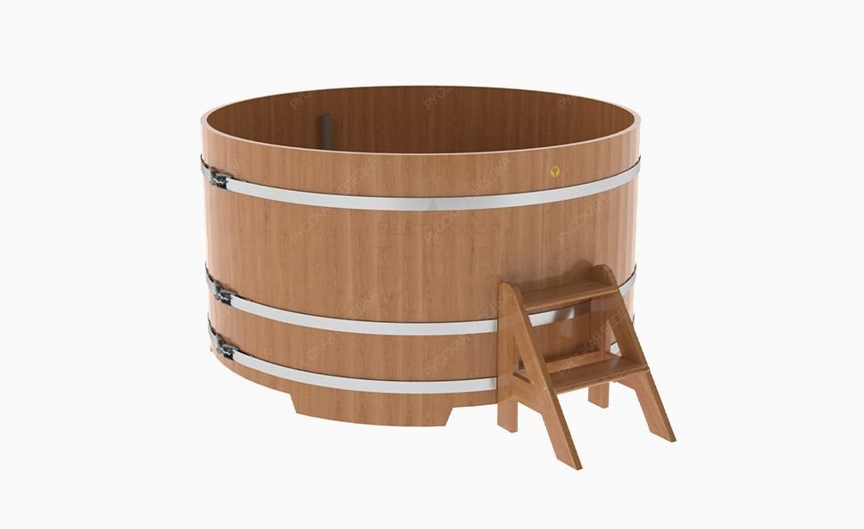 Купель круглая из дуба d=1,80 Изготовлена из дуба, имеет размер - в диаметре - 1,80 метра, высота - 1,0 метр. Поверхность купели обработана специальным, особым защитным покрытием из полиуретана – придающий поверхности купели – водостойкость – износостойкость, обладающим эластичностью. На ощупь – поверхность купели имеет приятную гладкую текстуру. Такая защита является абсолютно экологически безопасной что подтверждено государственным гигиеническим сертификатом. В случае, когда купель нужно установить на открытом воздухе – поверхность купели обрабатывае тся специальным покрытием с защитой от ультрафиолетовых лучей. В некоторых случаях, например - когда габариты купели превышают размеры дверных проемов в помещениях, доставка купели осуществляется в разобранном виде –в составе из четырех отдельных сегментов и донышка, сборка осуществляется на месте - стоимость сборки купели - уточняйте у менеджеров.