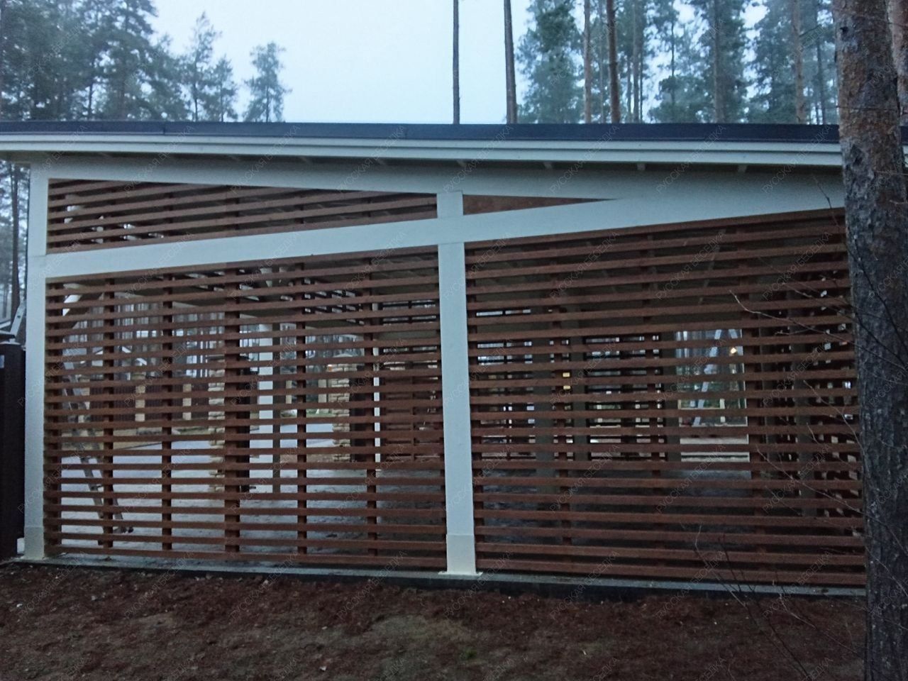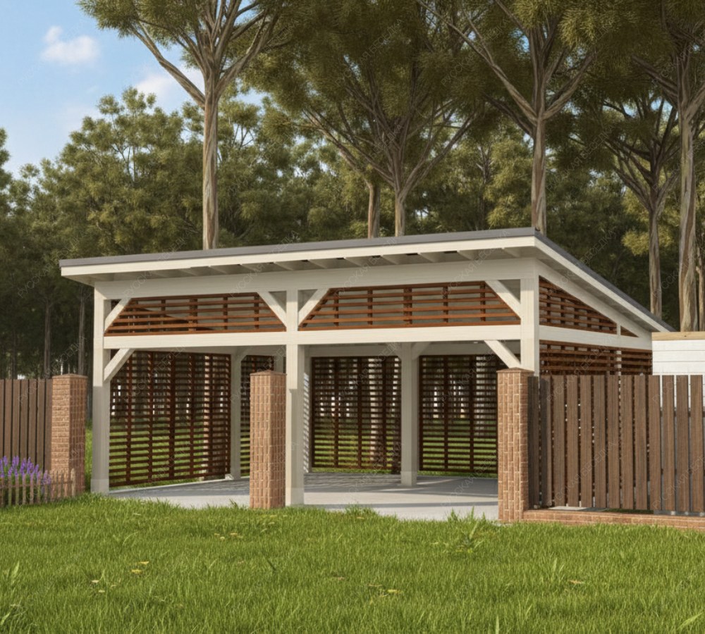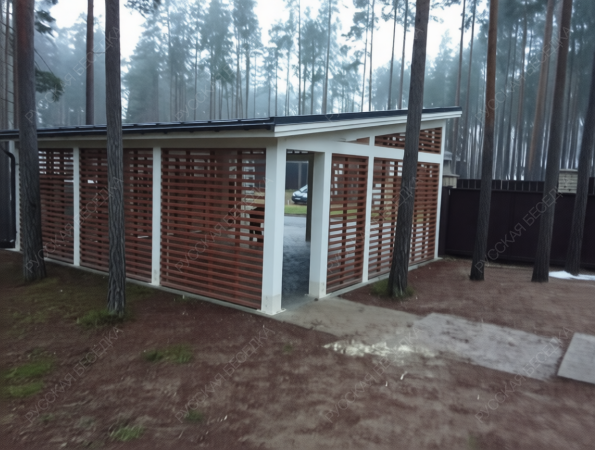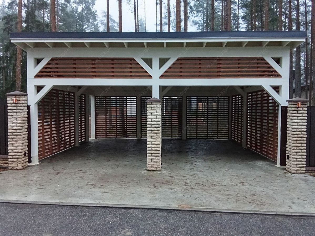 Навес из дерева послужит отличным парковочным местом для одного или нескольких автомобилей.