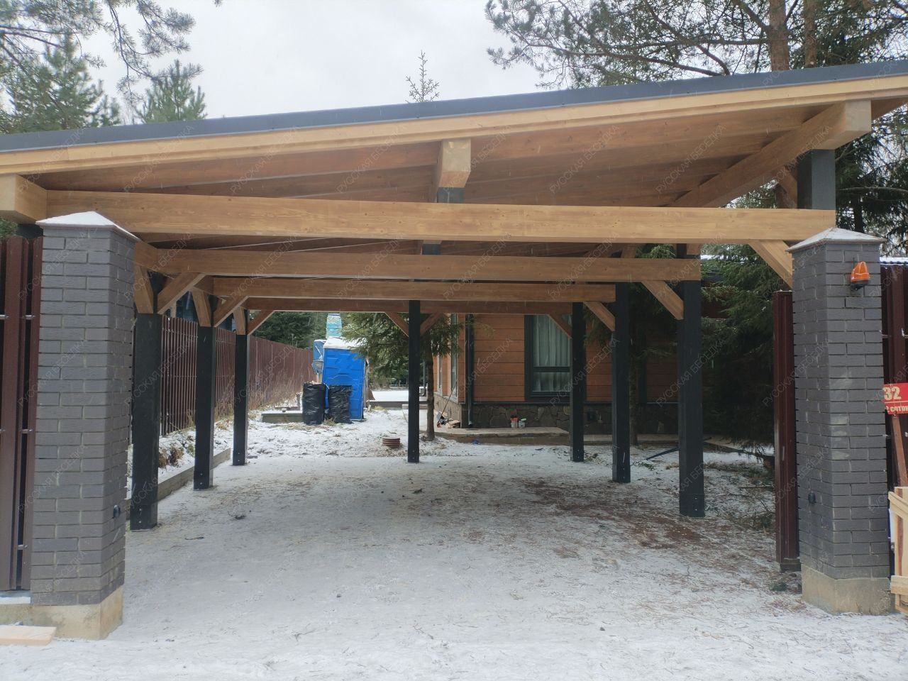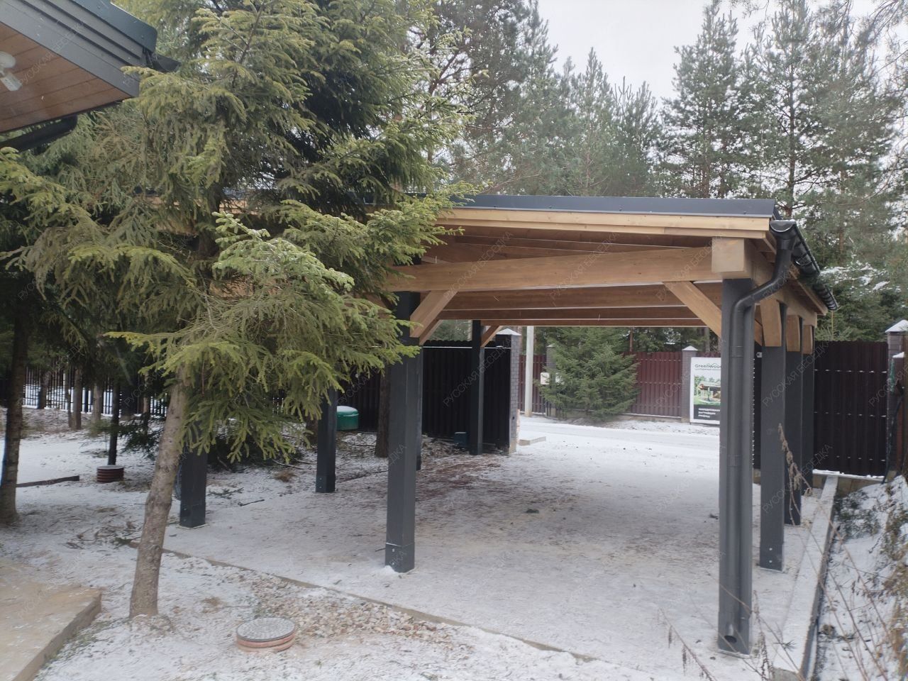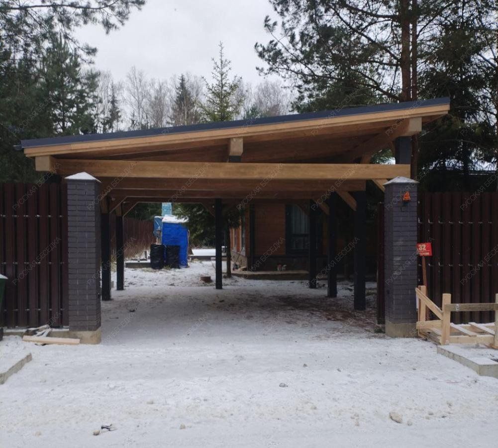 Навес из дерева послужит отличным парковочным местом для одного или нескольких автомобилей.
