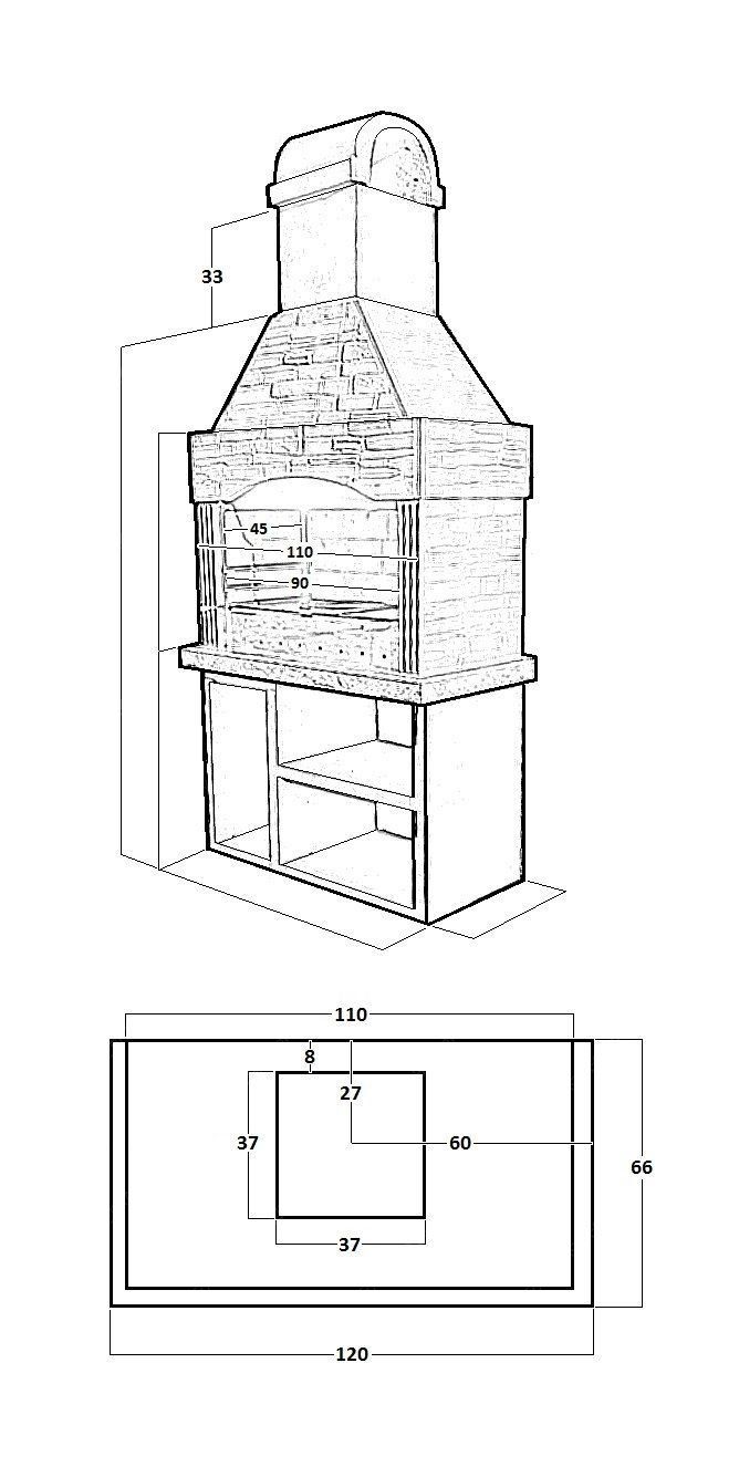 Модель печи-барбекю №12 — одна из самых компактных. Она идеально подойдет для тех участков, где свободного пространства очень мало. Особенность конструкции в том, что нижняя часть под топкой сделана сквозной. Изначально она запланирована для хранения дров, угля. С дровами очень удобно, потому что в сухую и немного ветреную погоду даже немного влажная древесина при такой конструкции хорошо сохнет.