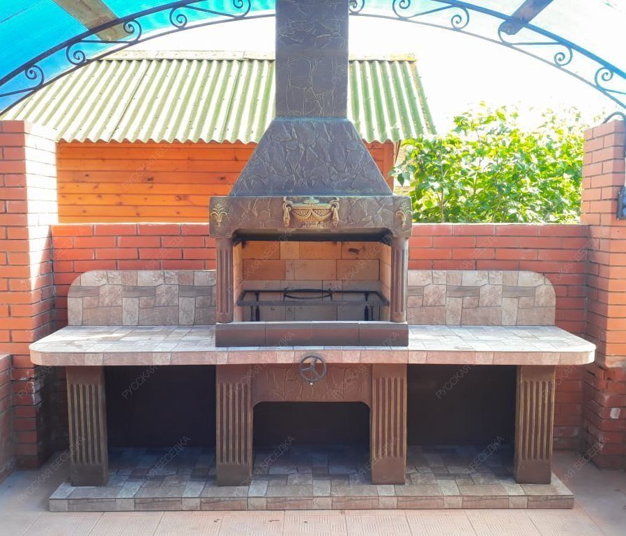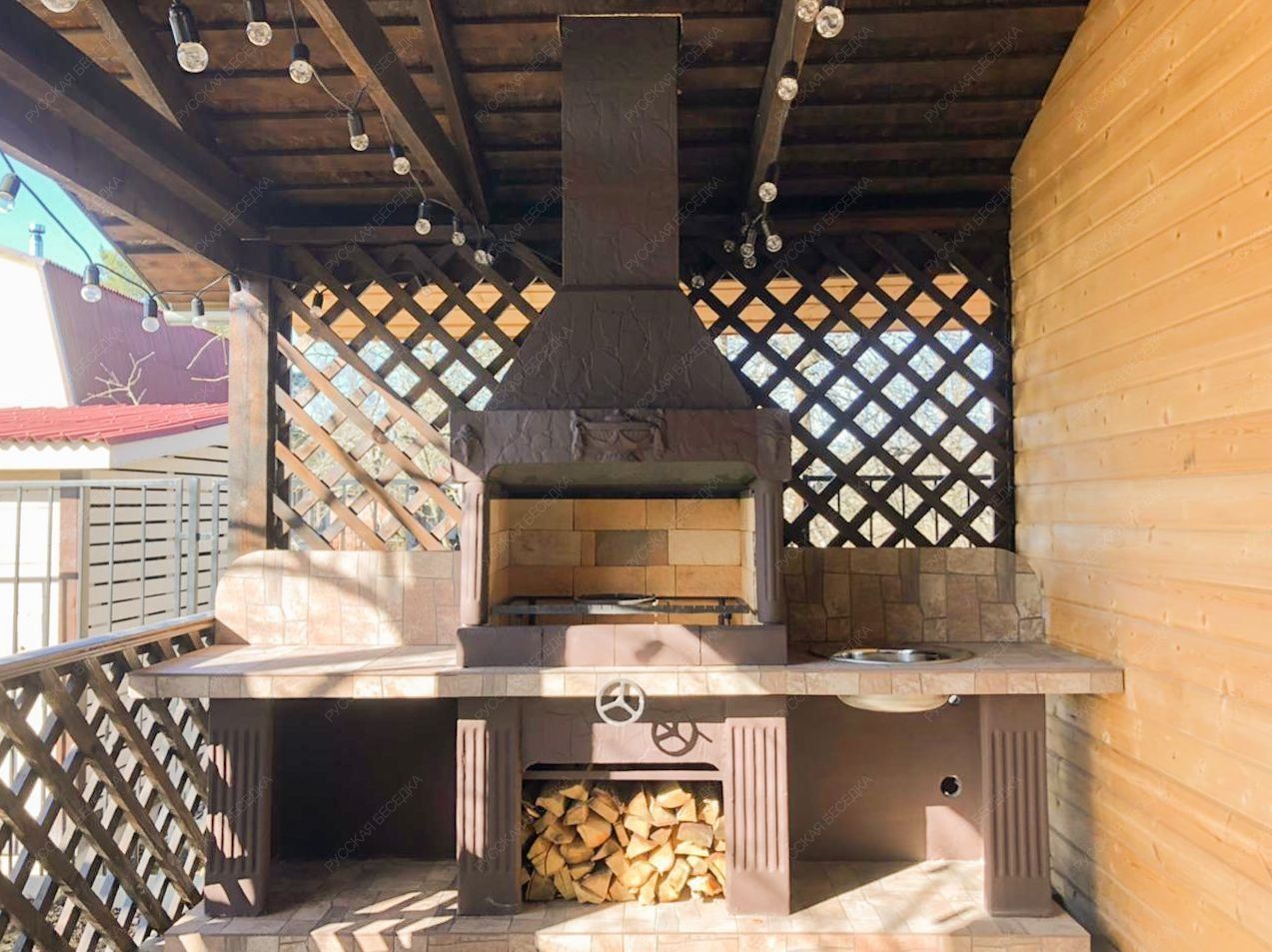 Большая печь-барбекю для дачи — это, скорее, целый комплекс для настоящих любителей готовить. Конструкция идеально впишется в просторную беседку или летнюю кухню, закрытый дворик.
