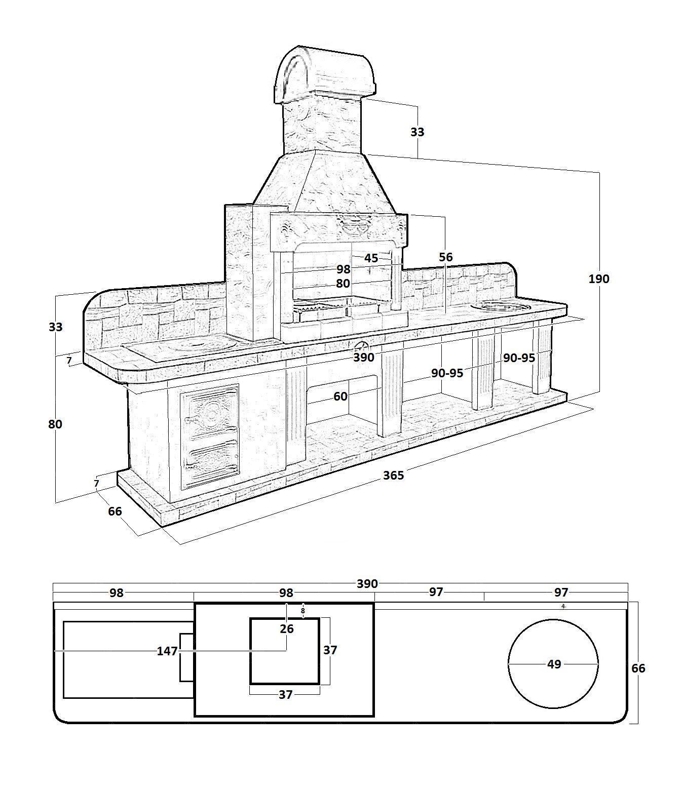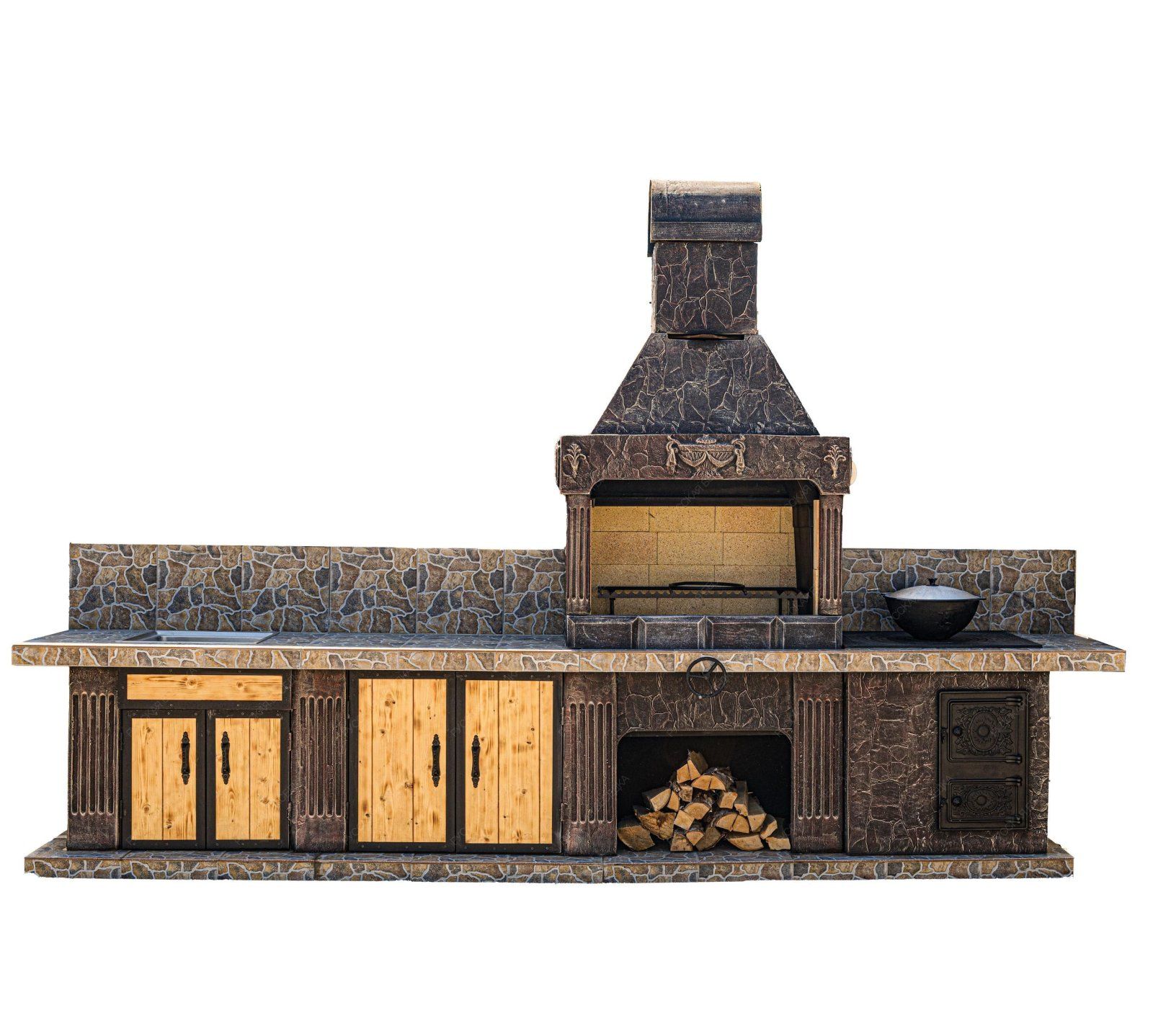 Печь № 22 — Печь барбекю с печью под казан, мойкой и рабочим столом