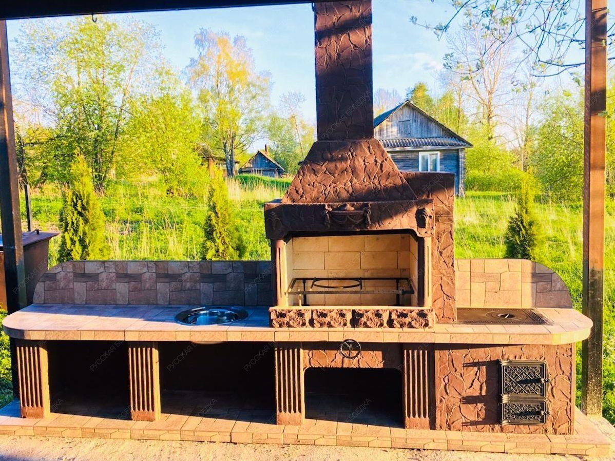 Печь-барбекю этой модели представляет собой полноценную кухню — вам остается только провести воду для использования встроенной раковины. У конструкции есть открытая топка и плита, работающая от закрытого огня, так что вы можете готовить почти все блюда. Исключением станут только те рецепты, для реализации которых нужна полноценная духовка. В остальном изделие ничем вас не ограничивает.