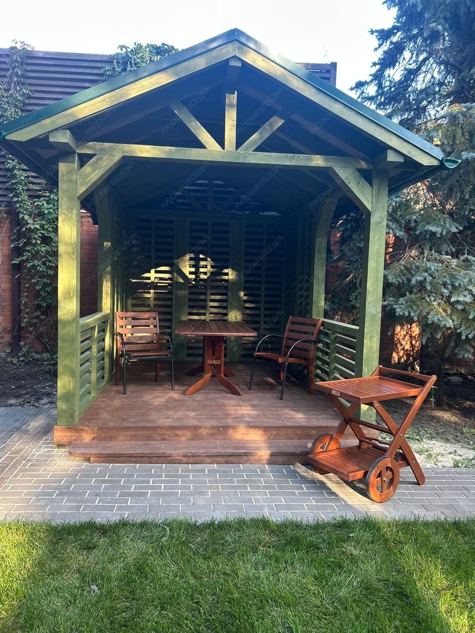 Беседка выполненная из лучших пород древесины, прослужит долгие годы и не потребует особого ухода и обслуживания. Специальные лакокрасочные материалы которые мы используем, предотвратят старение, гниение и заражение грибком конструкции кухни. Используемая огнебиозащита образует полупрозрачное полуматовое покрытие, стойкое к влаге, УФ-излучению, перепадам температуры и другим атмосферным воздействиям.