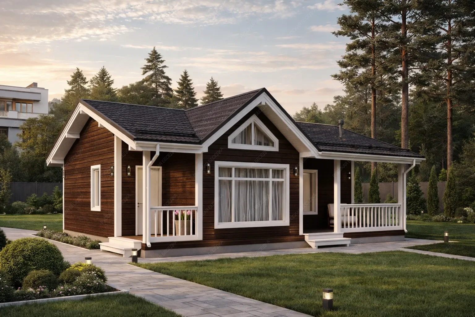 Садовые дома из хвойных пород древесины — это идеальное решение для обустройства загородного участка. Просторные и уютные, они отлично подходят для летнего проживания, выполняя функцию гостевого дома или компактной дачи, где можно с комфортом проводить тёплые месяцы вдали от городской суеты. В основе конструкции — массив сухой строганной доски камерной сушки и клееный брус, прошедшие тщательную обработку. Сорт древесины АВ по лицевой стороне обеспечивает чистую, эстетичную поверхность с благородной текстурой натурального дерева. Хвойные породы (ель и сосна) создают внутри особый микроклимат: воздух наполняется лёгким ароматом смол, а естественная способность древесины дышать поддерживает комфортный уровень влажности даже в жаркие дни. Такие постройки органично вписываются в любой ландшафт, не требуя массивного фундамента и сложного ухода. Внутреннее пространство может быть организовано по собственному усмотрению: от зоны отдыха до компактной спальни или столовой. Это полноценное жилое пространство, где каждая деталь продумана для того, чтобы пребывание на свежем воздухе было максимально комфортным. Капитальность конструкции, обеспеченная качественными материалами, гарантирует долгие годы эксплуатации. Садовый дом становится не просто постройкой, а любимым местом встреч с близкими и уединённого отдыха на лоне природы.