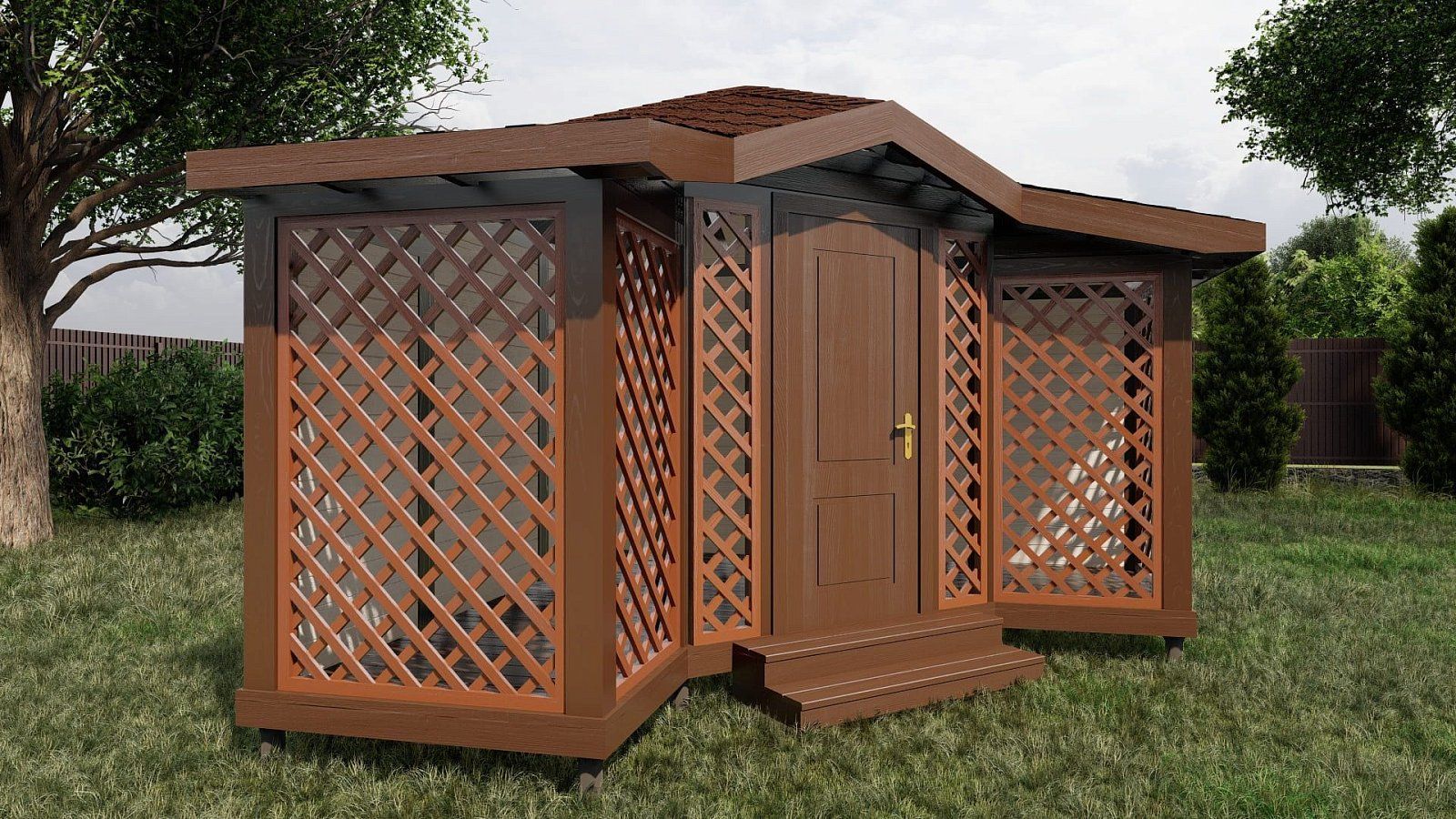 - Форма беседки: угловая